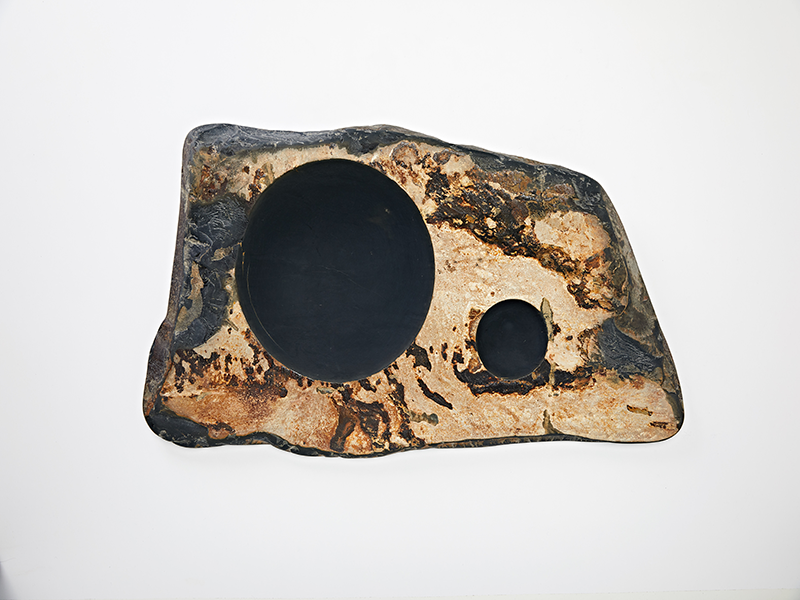 한국 충남 보령에서 2대째 전통공예의 맥을 이어오고 있는 벼루장인 석전 노재경 선생과, 대학에서 제품디자인을 가르치고 있는 아티스트 홍철순 교수의 최근작을 중심으로 이루어진 코라보레이션 듀오전이다. 노재경 장인의 작품이 중국, 일본, 한국의 서예가들이 즐겨 찾는 고전적이고 전통적인 벼루를 만드는 일에 집중하고 있다면, 홍철순 아티스트의 작품은 고전적이면서 현대적이기도한 포스트모던의 세계이다. 노재경 장인의 작품은 벼루의 전통적‧기능적 측면을 중시한다면, 홍철순 아티스트의 작품은 단순히 기능을 넘어 어떤 특정 공간에 둠으로써 보는 이들에게 진‧선‧미와 지‧정‧의를 느끼게 하는 새로운 미학적 가능성을 모색하는 실험을 강조한다. 노재경 장인은 그래서 동양의 지식인들이 추구하는 가치와 상징물들로 벼루의 표면이나 가장자리, 또 뚜껑을 극도로 정교하게 조각하는 반면, 홍철순 아티스트는 작가가 모든 것을 다 설명하고 채우려 애쓰는 대신, 오히려 비움으로써 보는 이들로 하여금 관조하게 만들어 생각을 채우도록 자연스레 이끈다. 요컨대, 노재경 장인의 작품이 ‘오트쿠뛰르를 입은 멋쟁이 모델’이라면, 홍철순 아티스트의 작품은 ‘휴일날 편안하게 캐주얼웨어를 차려 입고 공원을 산책하는 시민’이라고 비유할 수 있을 것이다. 그러니까, 후자는, 얼핏 보면, 아직 다 완성되지 않았고 다소 세련미가 부족한 것 같지만 그 상태 그대로 완성과 세련됨을 나타내는 여백의 미, 비움의 미학에 대한 메타포다. 관객들은 동일한 주제를 두고 해석과 표현에 있어 서로 닮은 듯 다른 세계를 엿볼 수 있을 것이다.